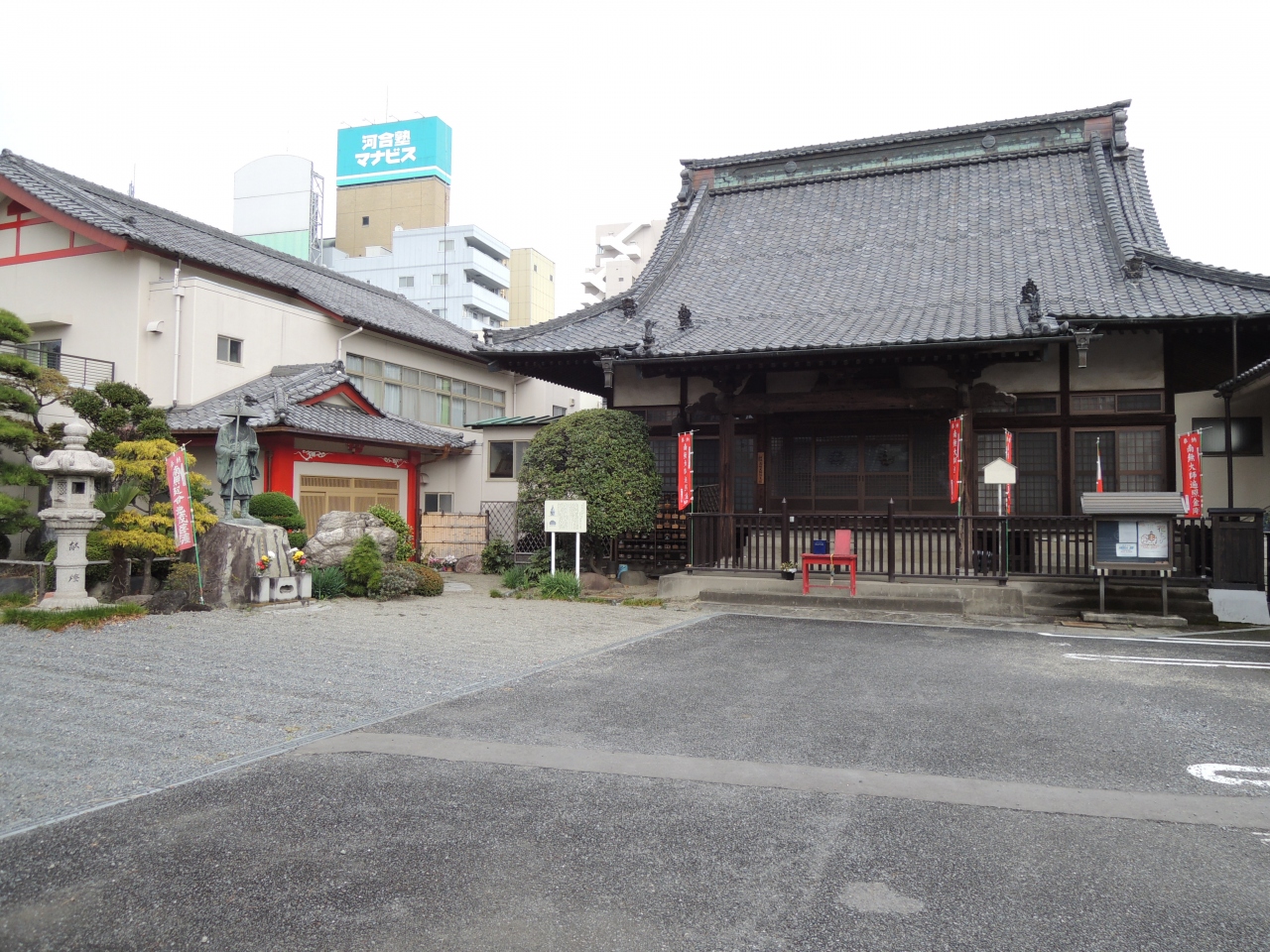 本堂前には高崎市指定重要文化財の円空円熟期の作であると思われる「天神像」の説明看板が建っています。円空は12万の仏像を作った人でこの天神像は菅原道真公を描いたものとされています。本堂正面には「開運厄除大師」の額も掲げられていました。