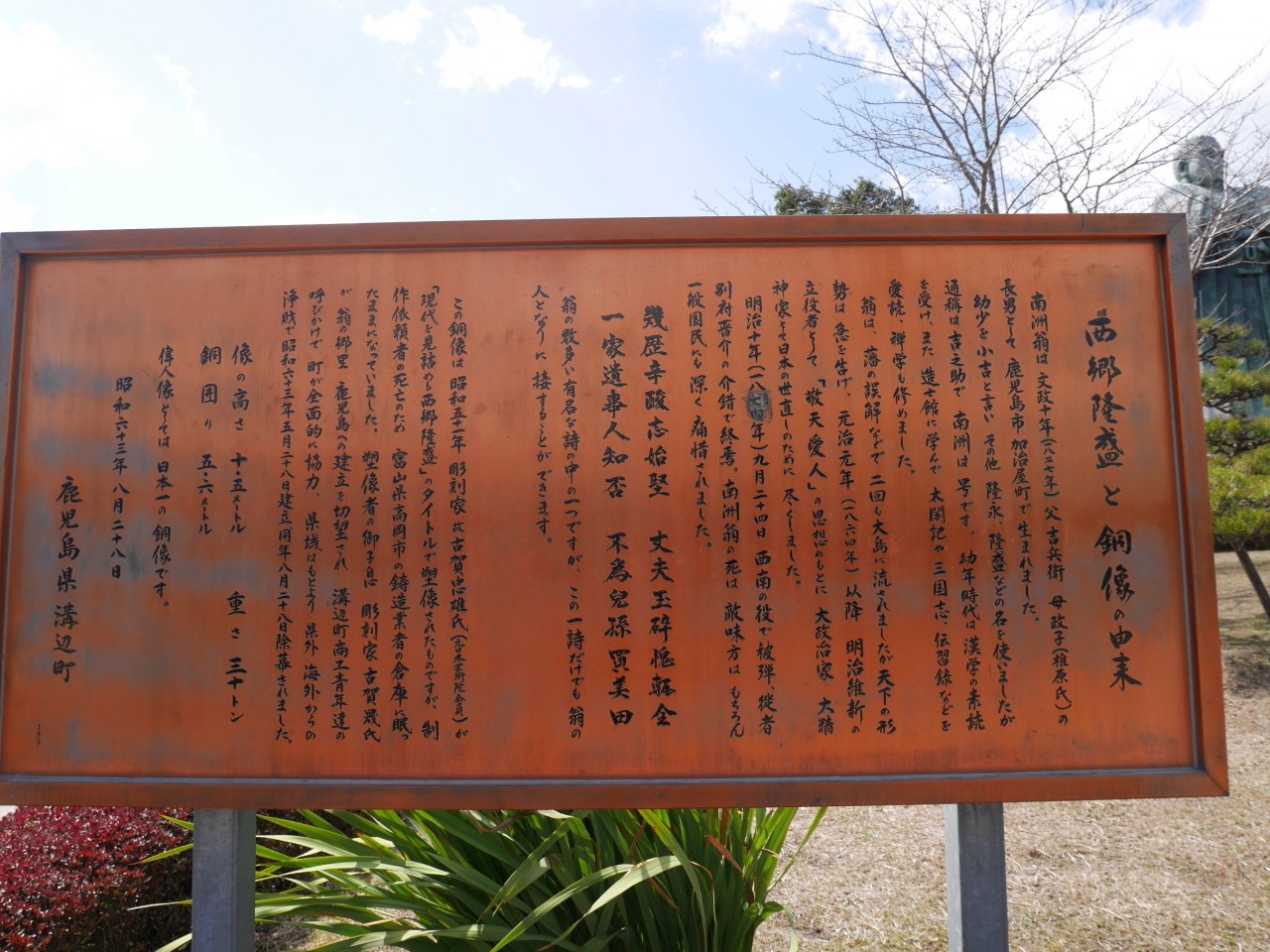 鹿児島空港の目の前にある公園。とても大きな西郷さんの銅像が見ごたえ満点。人物像としては日本最大級なんだとか。しかし、犬を連れていません。。。
