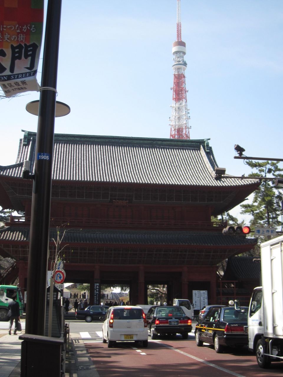 地下鉄大門駅から大門(増上寺の表門)を抜け、しばらく行き突き当たったところにある赤い大きな門で、増上寺の中門に当たります。大きな赤い門で国の重要文化財にも指定されています。徳川幕府の助成により、幕府大工頭・中井正清とその配下により建立され、元和8年(1622年)に再建されました。建築様式は三戸二階二重門、入母屋造です。二階には釈迦三尊像と十六羅漢像が安置されているそうですが、非公開のため見ることはできません。「三解脱門」とはむさぼり、いかり、おろかさの3つの煩悩を解脱する門ということで、この門を潜るとこの3つの煩悩が解脱するそうです。