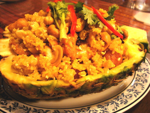 パイナップルチャーハン。カシューとか甘いソーセージとか具たくさん。でも・・・ご飯がべちゃべちゃでそれほど美味しくはなかったかなぁ〜。残念。