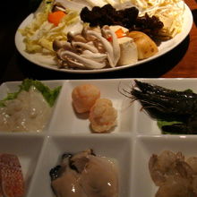 野菜盛り合わせと魚介盛り合わせ。2人で十分お腹いっぱいになった。