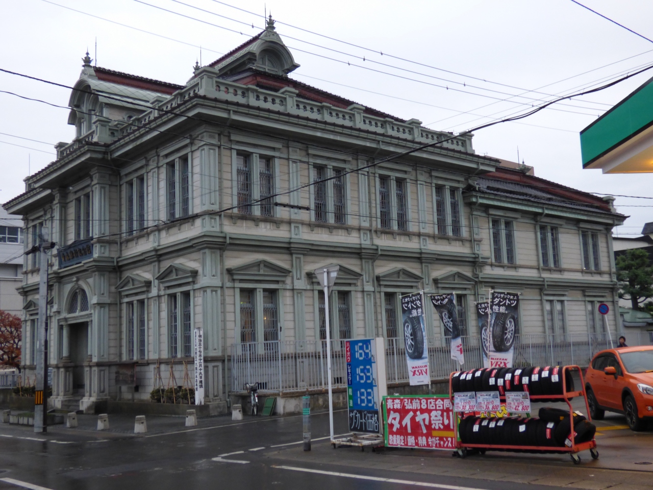 ルネッサンス様式の建物だが、防犯・防火のための引き戸や、壁面の漆喰などもあり和洋折衷となっているのが興味深い。
