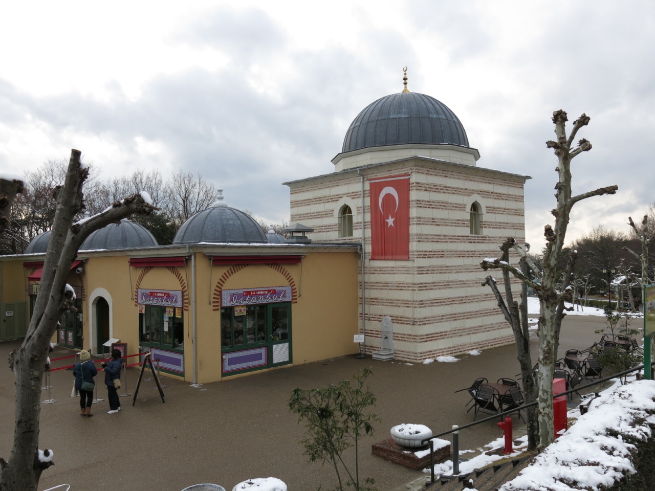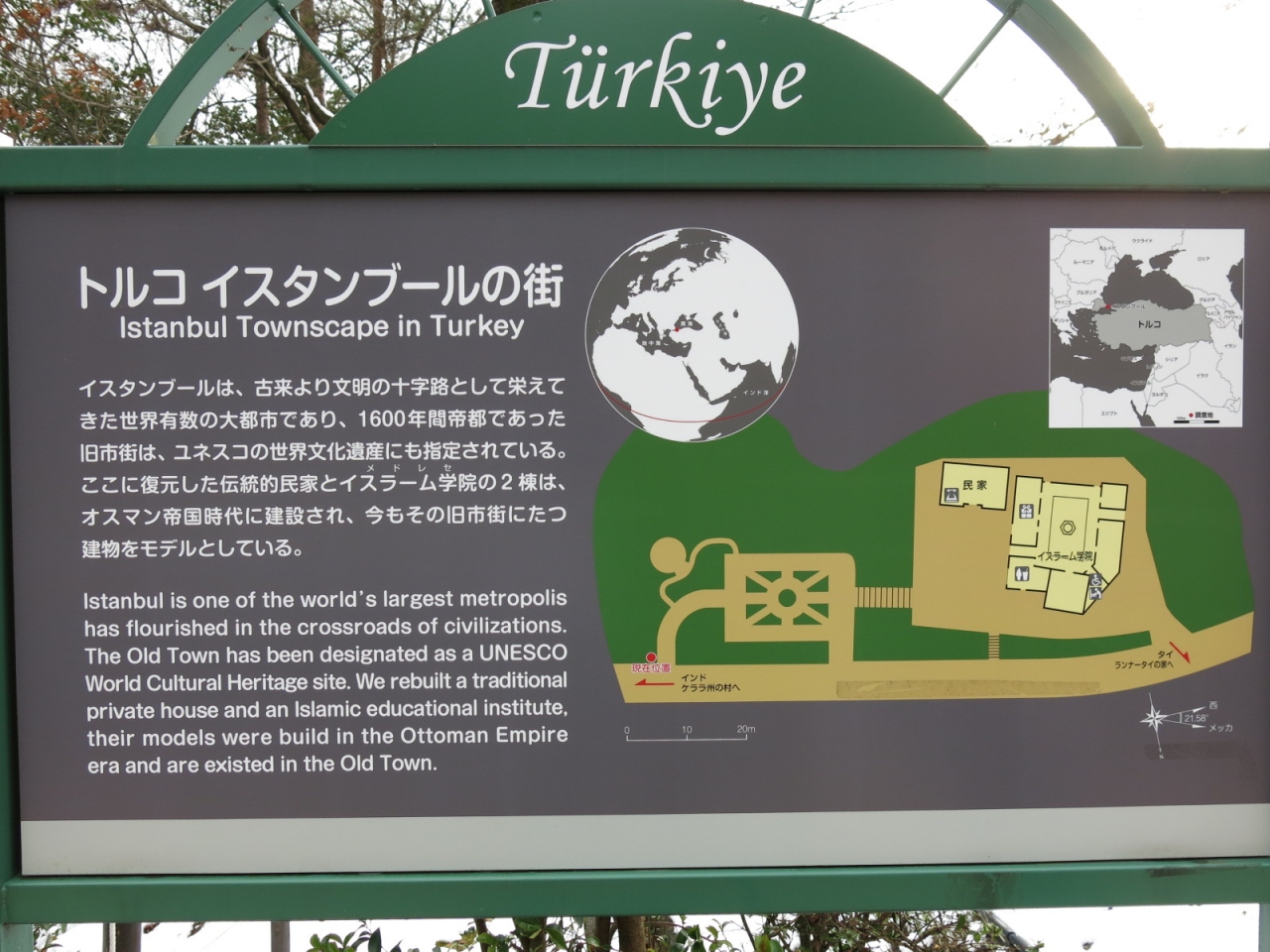 新しく出来た「トルコ館」・・・オリエンタルムードが漂っていました。イスラム学院と民家が立ち並び。トルコ衣装を着たり、トルコ料理をいただいたり、トルコの雑貨を買ったりできます。トルコ風のスープ(ひよこ豆とミートのスパイシースープ)をいただきました。体が温まり、おいしかったですよ!!