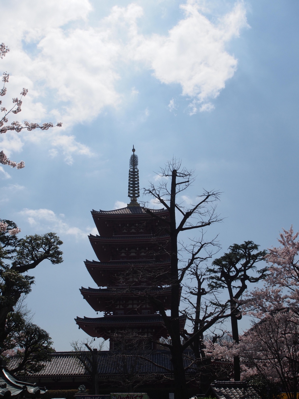 浅草寺の境内にあり、ひときわ高くて他に高い建物が周囲にないために目をひきます。