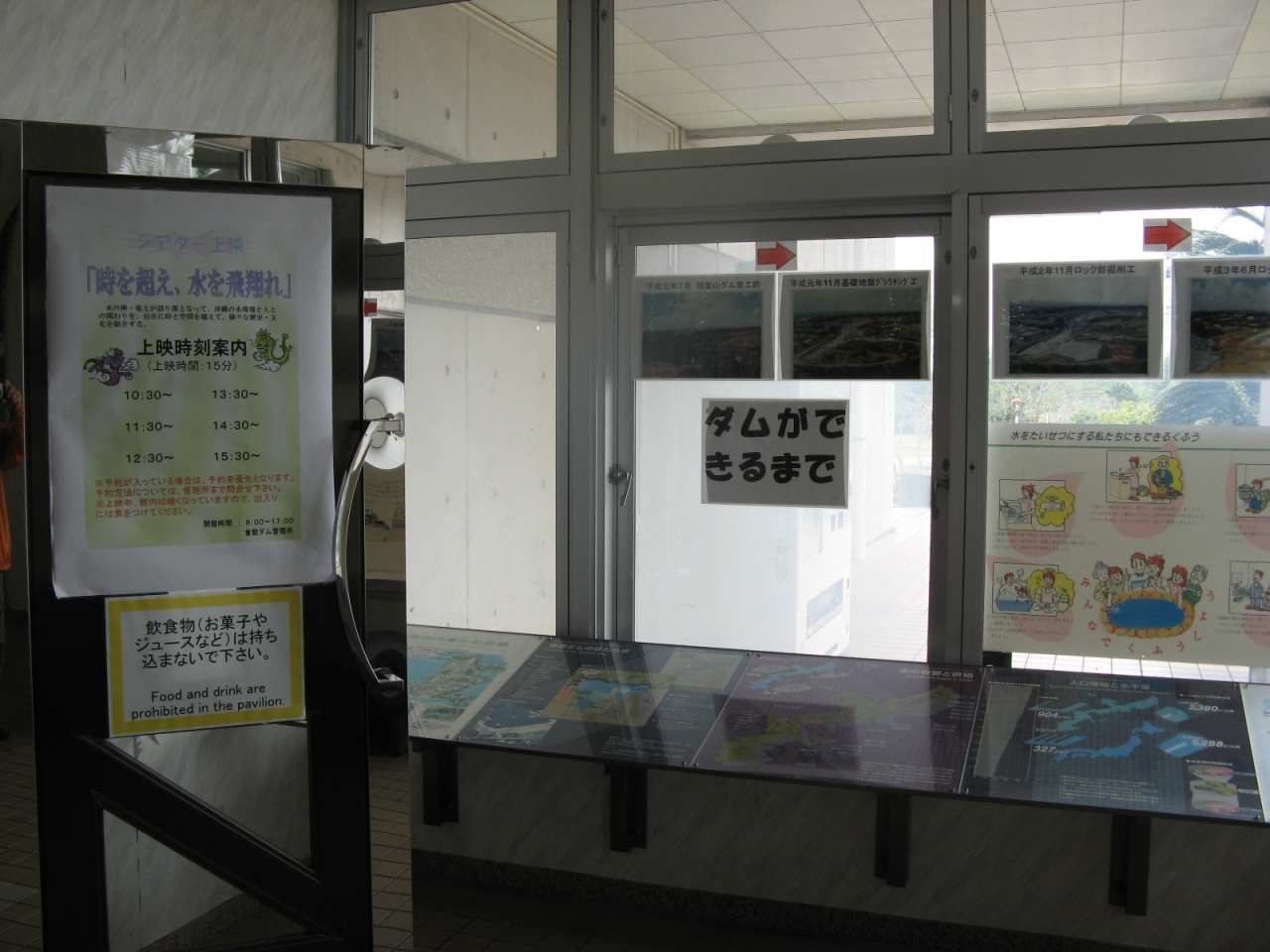 ダム周辺をゆっくり散策した後、資料館で沖縄の水環境と人のかかわりを紹介する映像を見たり、水に関する実験装置を触って遊んだり出来ました。無料で上れる高層タワーや広大な綺麗な公園があるのに、平日だったためか、訪れる人は大変少なかったです。