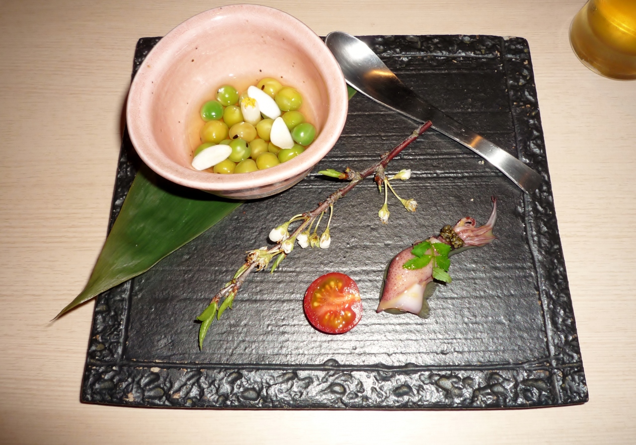 ホタルイカや、エンドウ豆など春を感じる料理がまず出ました。