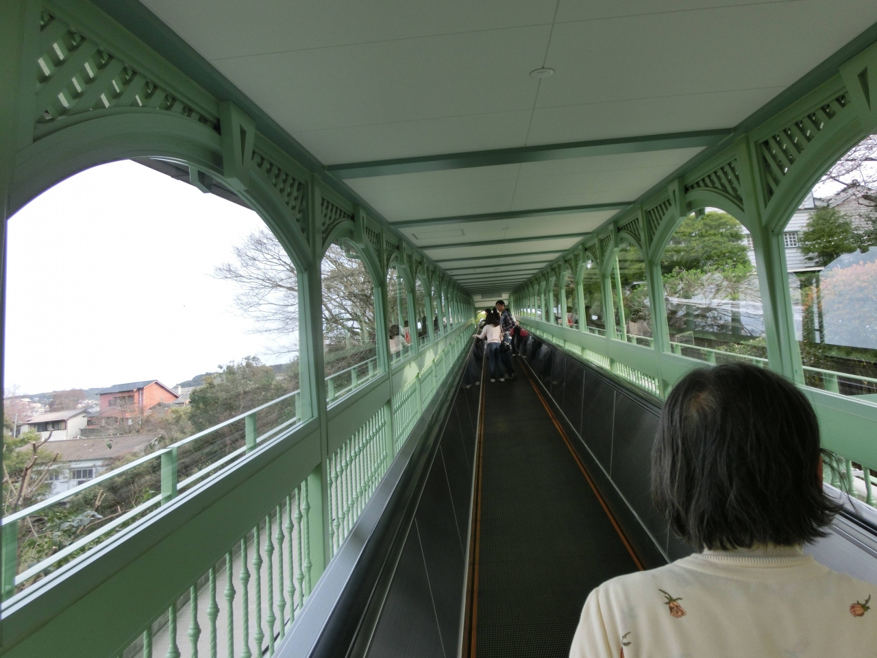 下からグラバー園に入ると、延々とエスカレーターで一度丘の上まで上がり、そこから下りながら園内を散策することになりましたが、グラバースカイロードで行く場合は、最初から上側の入り口からグラバー園に入るようです。