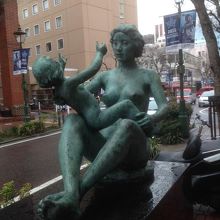 目線の高さにあり、囲いも無いので、間近で鑑賞でき、手で触れることもできます。アイスクリーム発祥の地を記念して寄贈されたものだそうです。母子がアイスクリームを象徴・・・そう言われてみれば十分に納得できます。