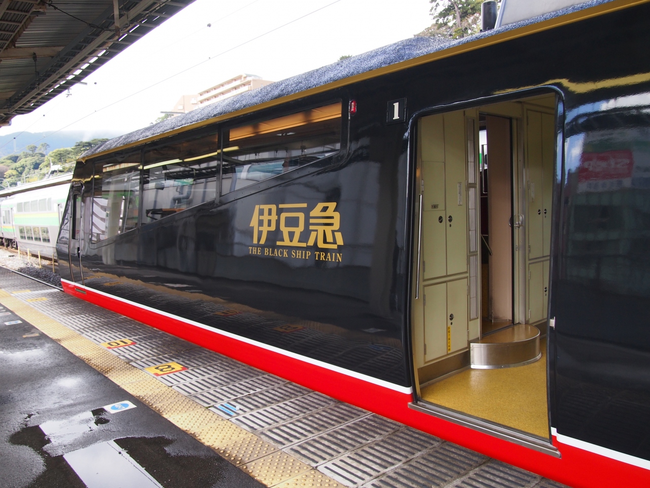 河津桜を見に行った時、熱海から乗り換えた電車です。 黒船電車は伊豆急の電車ですが、JR伊東線にも乗り入れているので、熱海⇔河津の約1時間、とっても楽しい鈍行電車の旅が出来ました!
