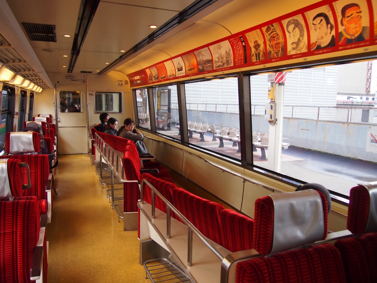最前両と最後部車両は、展望車両になっていて、運転席よりも高い位置に座席があるので、パノラマviewを楽しめます!