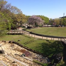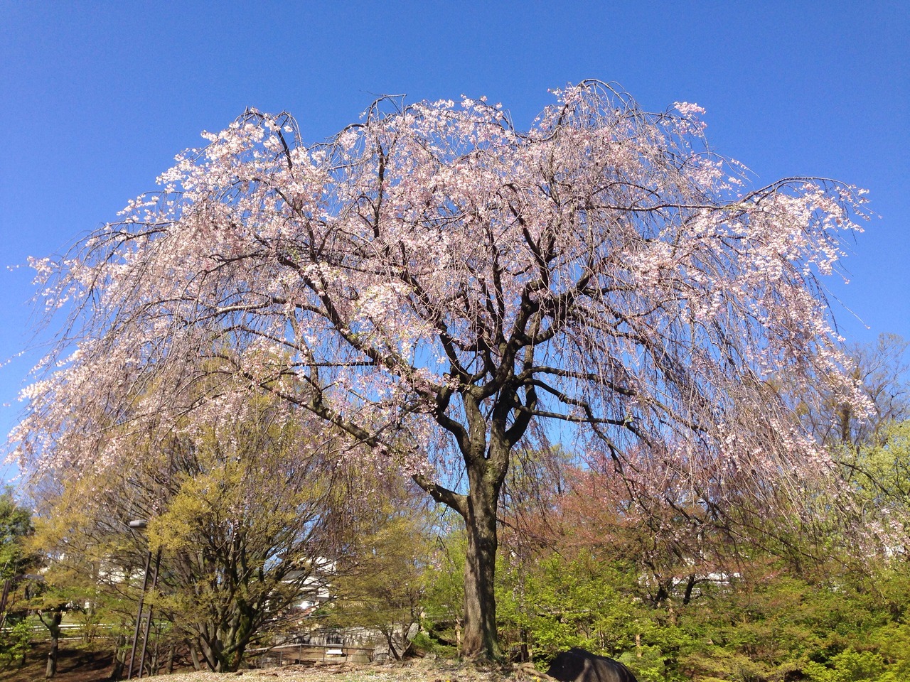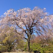 こんもりした丘の上に半分散ってしまったしだれ桜がありました、満開はきっと美しいでしょう。