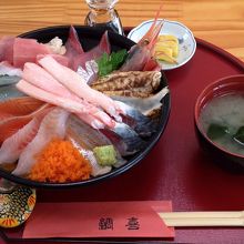 鳥取砂丘にあるお店。他店に比べると看板も目立たず、間口も狭いので気づきにくいかもしれませんが、新鮮で立派な海鮮丼を食べることができます。フグも入っていました。少し贅沢バージョンの1680円だとマグロとカニが乗っています。
