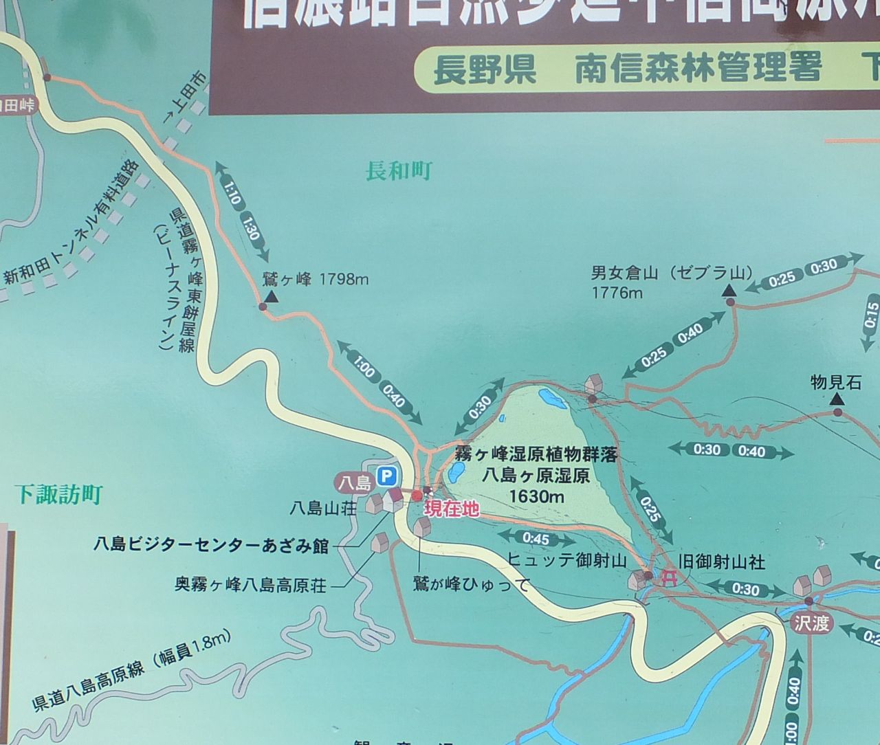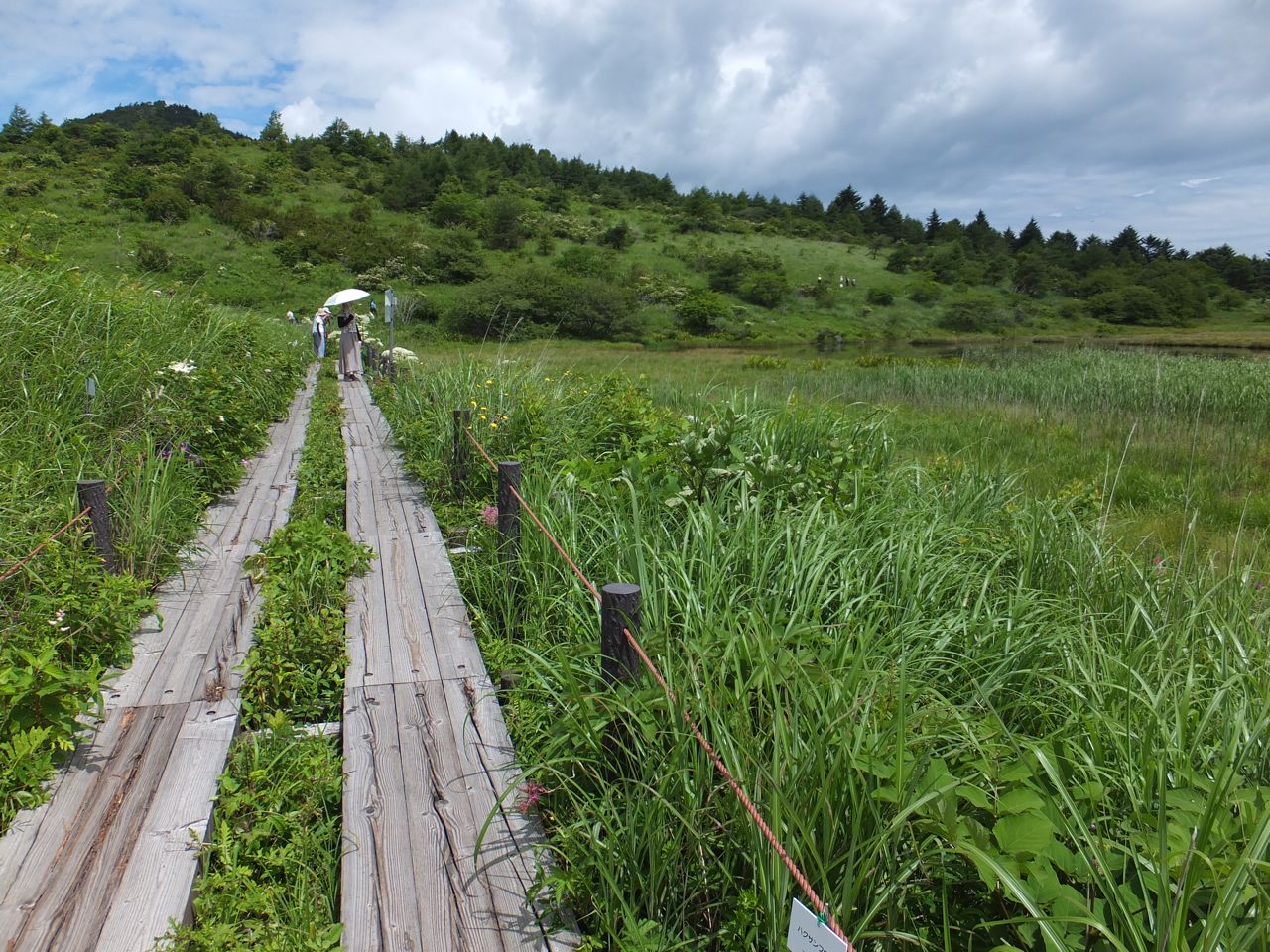 駐車場のわきにビジターセンターがあり、その横に道をくぐるトンネルがあり、その先の上り道をあがった峠で見渡す八島湿原の全景は感動的です。
