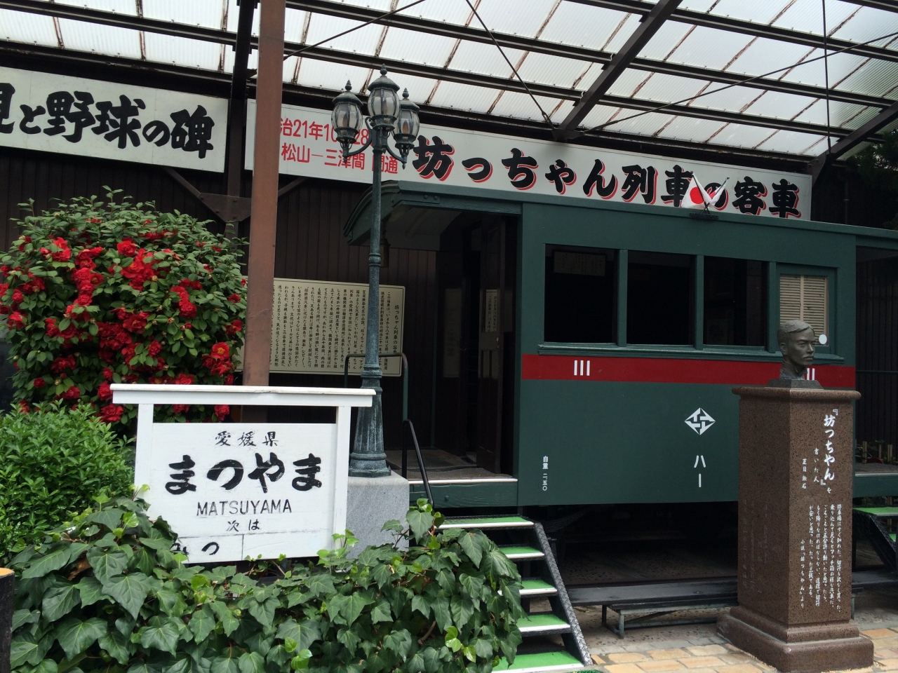 そして,子規堂の前には,坊ちゃん列車の客車が展示されていました。