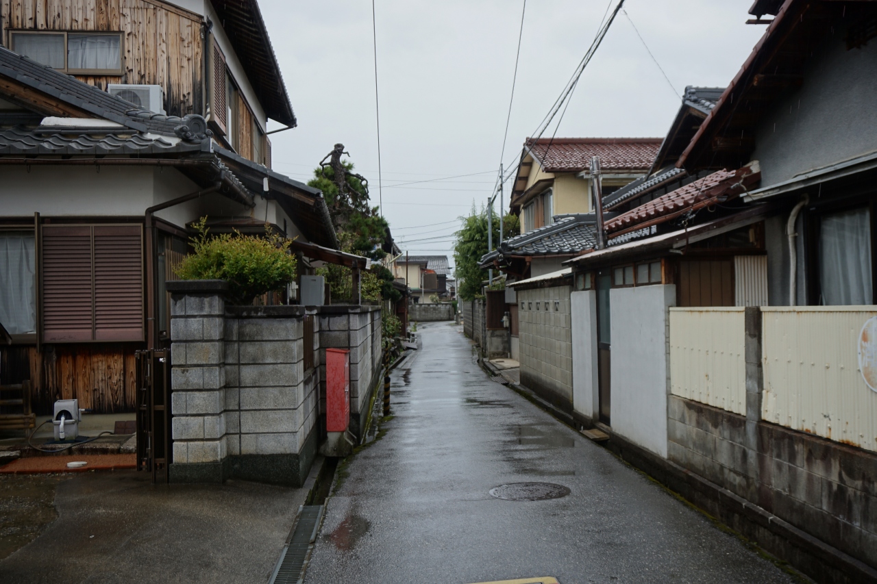 善利組足軽組屋敷は、キャッスルロードの突き当り。何か特定の建物があるのかと思ったら、その辺り一帯の住宅地を指すようです。狭い路地が縦横に走って一般住宅が建っていますが、その町割りがかつての足軽組屋敷のままなのだそうです。まあ、そう言われれば、そう見えるというくらいです。