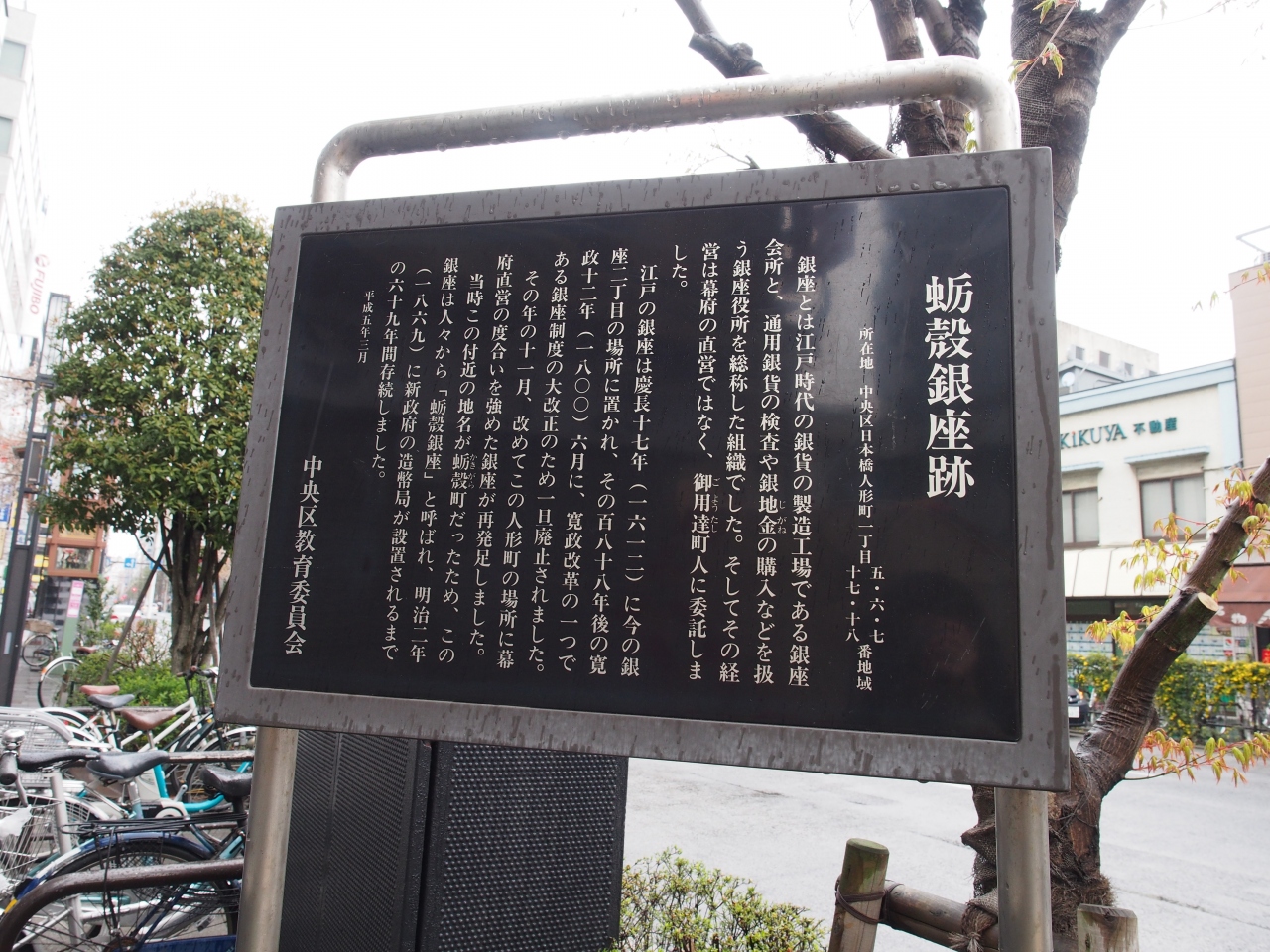 今の日本銀行がある場所が「金座」になります。そこからほど近い人形町に残っているのがこの立て看板。こんなところで銀貨が・・・と歴史を感じます。