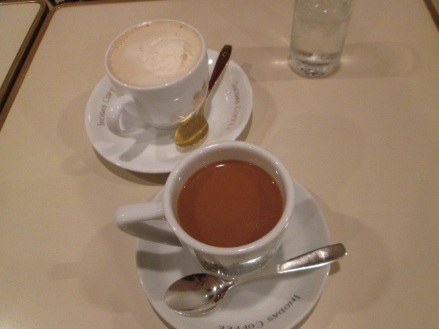 閉店が8時と言われて、飲み物だけならOKとの事で慌てて入りました。有名な京都のコーヒー店で、この豆を好きな友人によく飲ませてもらっていたのです。豆の種類は色々ありますが、わからないので一番上(名前は忘れた)のメニューで注文。スタバのコーヒーとは全然違い、優しい味です。ウインナコーヒーもありました。年配客が多く落ち着いた雰囲気で丁寧な接客です。