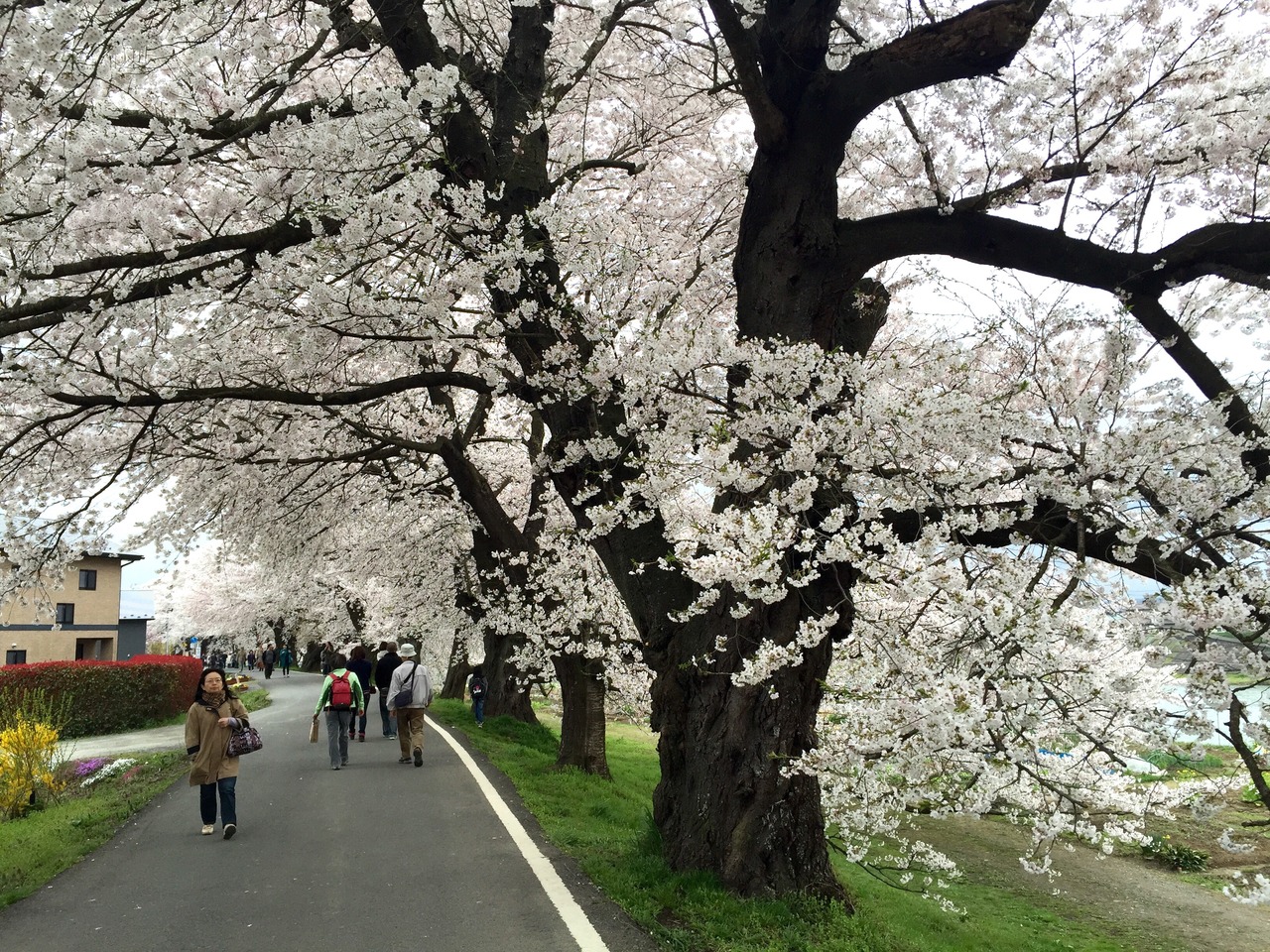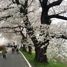 白石川の堤に約8kmにわたり「一目千本桜」が咲き誇っていました。