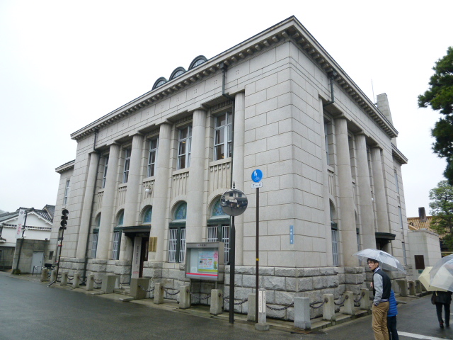 久しぶりに「倉敷美観地区」を観光しました。小雨が降っているので、隣のアーケードがある商店街を歩いて行くことにしました。すると右手にゴツゴツした強固な石でできた銀行が見えます。これが「中国銀行倉敷本町出張所」です。口座を作ろうと思いましたが準備してこなかったのでダメ。中に入ると普通の銀行とは全く違った世界です。とにかく窓がオシャレ、外からより中から見る窓が数段いいです。銀行の紹介展示もあります。静かに中に入って礼をして見学しましょう。