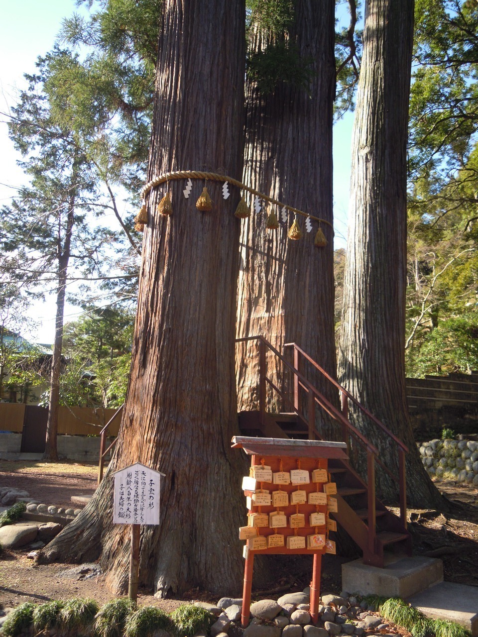 杉は根元がひとつでその上に階段があり、通過すると子宝に恵まれるそうです。