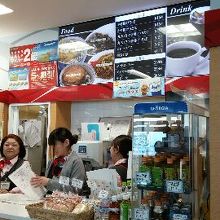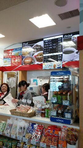 二階の搭乗口の荷物検査口を通り抜け、左に進んだところにある、お土産屋さんです。御菓子などのお土産や、雑誌、ボトル入りの飲み物が売られています。うどん、そば、カレーなどのホットフードやドリンクも販売されています。小さなスタンドがあり、そちらでコーヒーの味が調整できるようになっています。