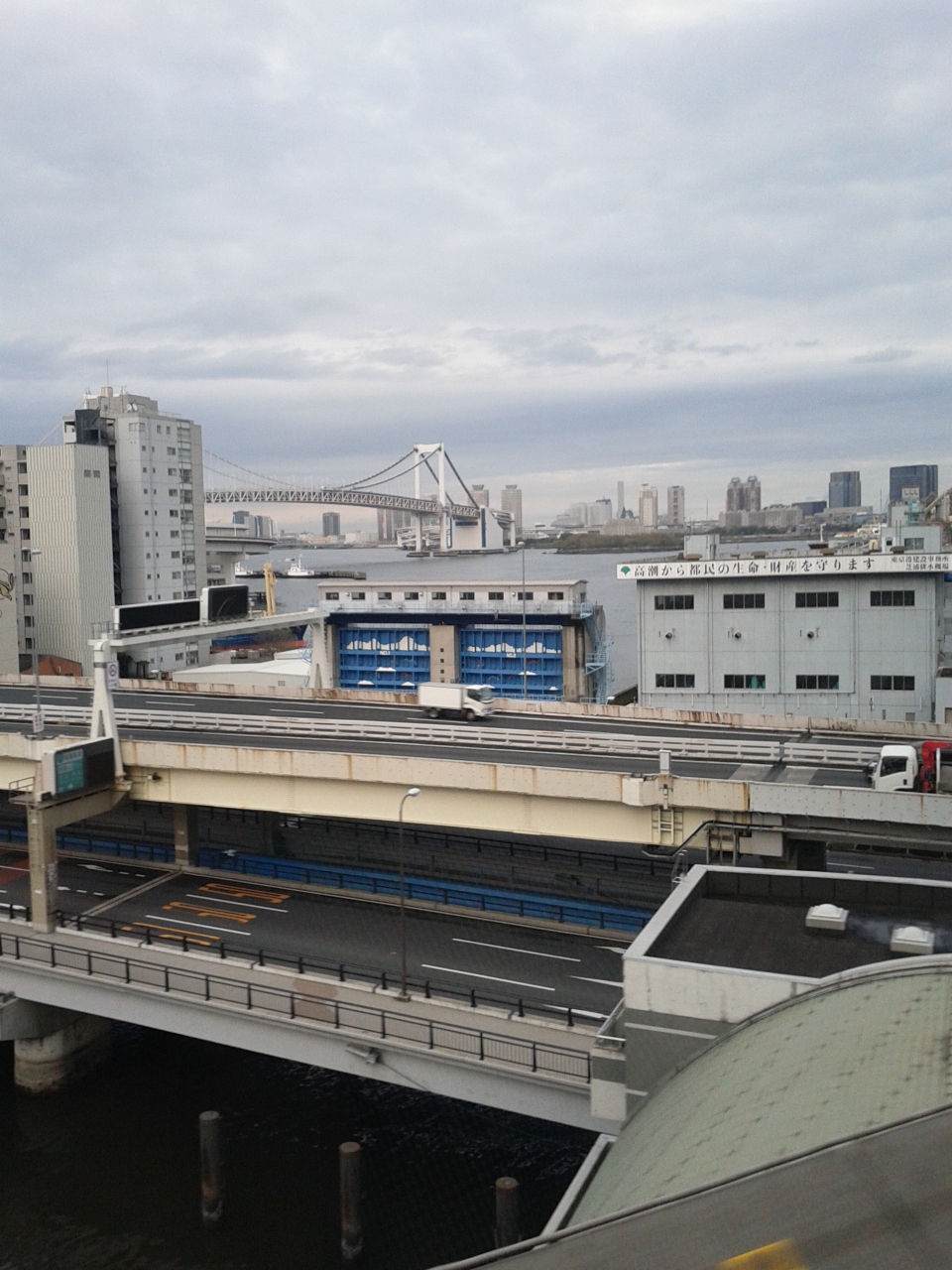 羽田空港からモノレールにて浜松町へ向かっている途中に車窓から見ることができる。大学生の頃からお台場にはたくさんの思い出があり、この橋を車や、ゆりかもめで通過してきた。夜景も綺麗だし、クリスマスには多くの若者・カップルが訪れる。