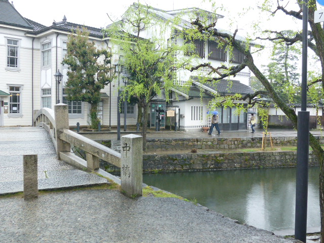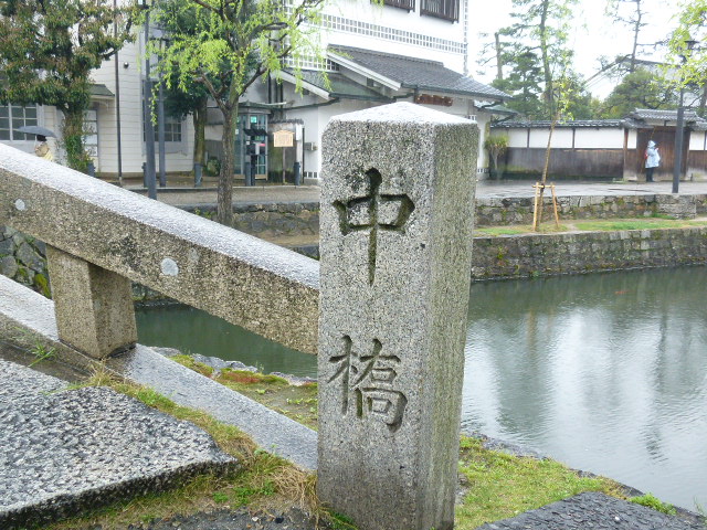 今回は「倉敷美観地区」を散策しています。江戸時代、中心を流れる倉敷川は物資を運んでくる運河として利用され、この地域は港町として栄えました。そしてこの倉敷川にはいくつかの橋が架かっています。美観地区の入口から行くと「今橋」の次二番目の橋が「中橋」です。造られたのは「今橋」より古く1887(明治10)年とのことです。この運河を物資を積んだ船が往来したんですね。歴史を感じます。直ぐそこに倉敷館(観光案内所)があります、休憩しましょうか。