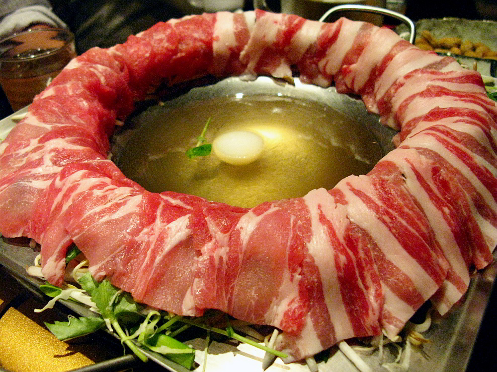 茹で過ぎないでほんのりピンク程度だと、肉の旨みたっぷりで美味しい。しゃぶしゃぶ肉だけど、