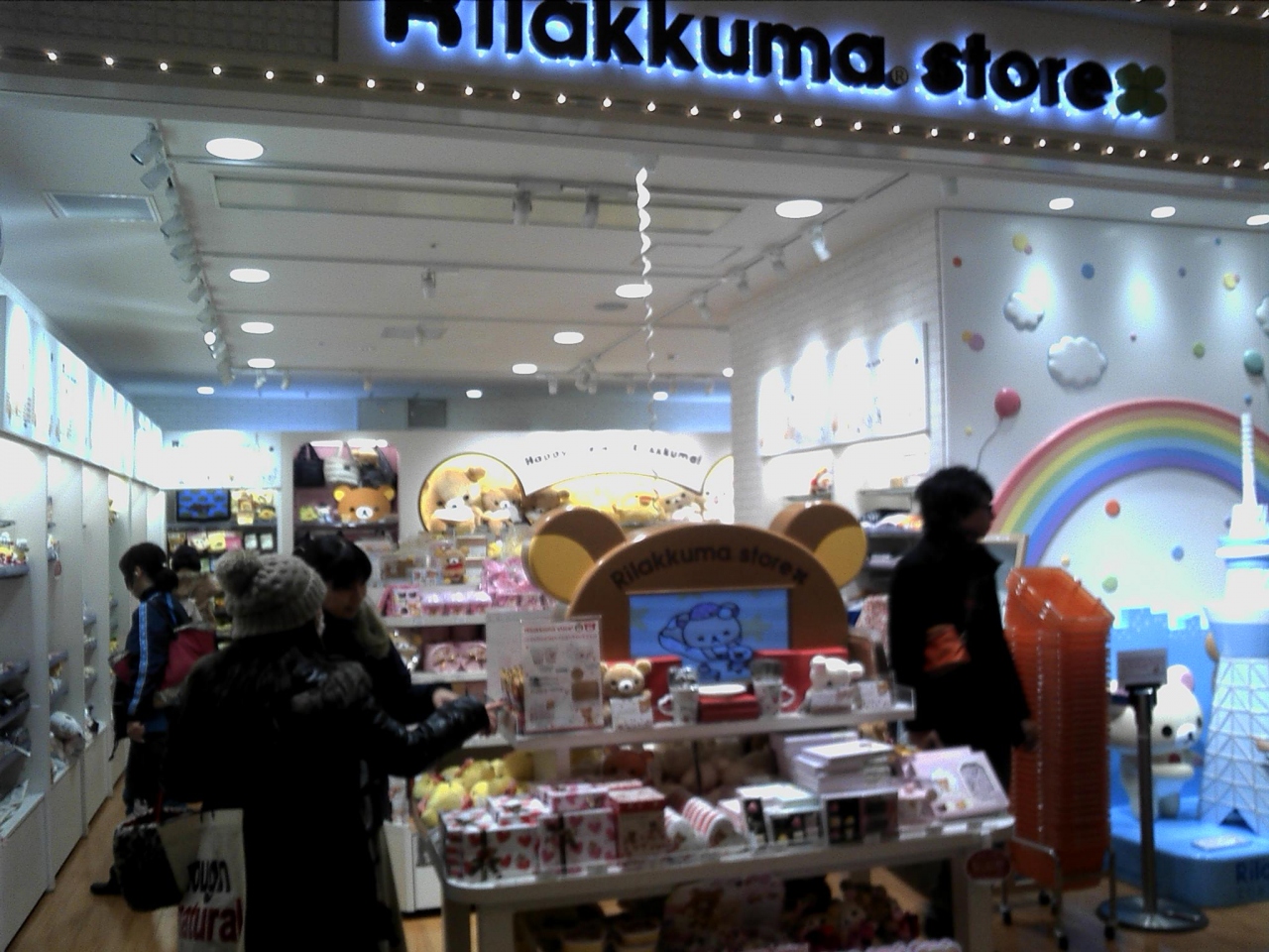 このリラックマストア (東京スカイツリータウン ソラマチ店)は、女の子に人気のキャラクターショップです。リラックマのグッズやぬいぐるみなどが多く販売されていて、品揃えが豊富ということで人気があるようです。通路を通りにくいほどお客さんでいっぱいでした。