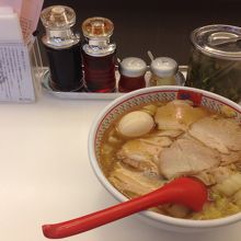 関西ではおなじみのラーメンショップ。恵比寿駅アトレ2階にありますのでアクセスは抜群です。店に入るとメニューをみて券売機ではなく対人販売でチケットを購入。購入したときの女性の関西弁はご愛嬌といったかんじでしょうか。