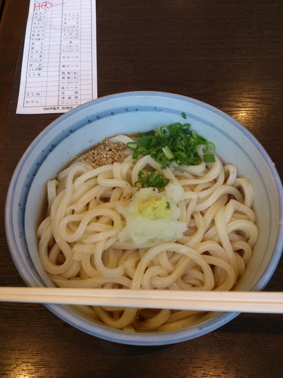 高松空港の中にあるうどん店です。さすがはうどん県ということで、それほど広くない空港なのにうどん店が2件もあります。高松に着いたらまずうどん、高松を離れるときは最後にうどんという使われ方なのでしょうか。うどん自体はオーソドックスなさぬきうどんでした。