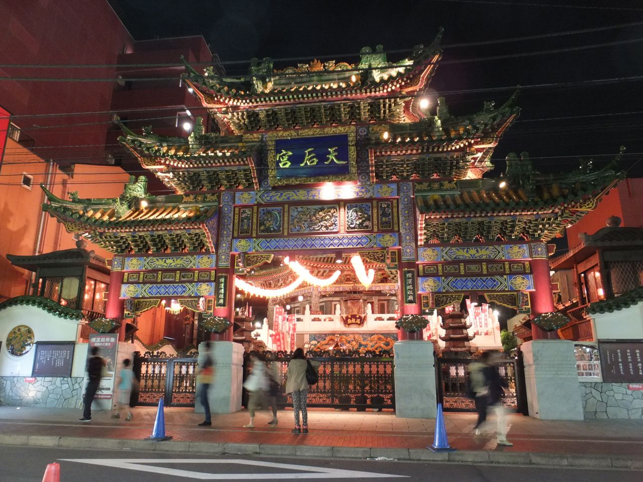 しかし夜も見応えあります。門からして派手な塗装で、それがライトアップされてぴかぴか。