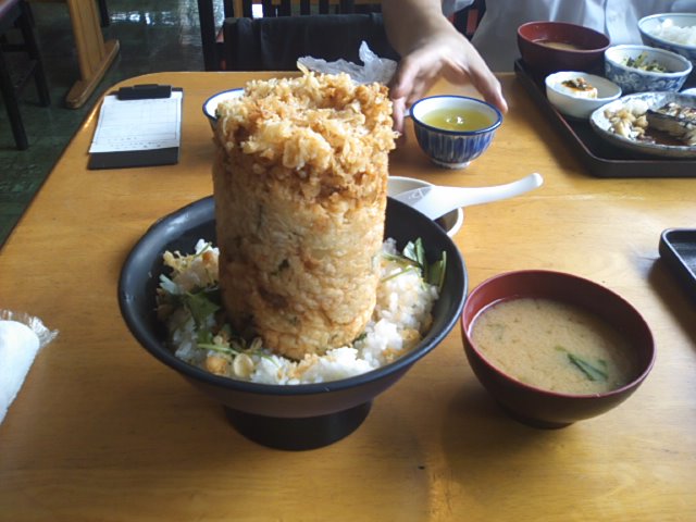 味は美味しいのですが、圧倒的な量があり、かき揚げの油にさすがに後半は飽きてしまいました。(店の方からしつこく確認された意味がわかりました)