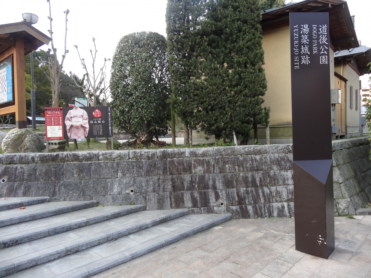 JR松山駅や大街道方面から道後温泉へ向かう途中、右手側に見える大きな公園が道後公園です。公園内には史跡的なスポットもありますが、のどかな公園といった趣が強く、地元の人が散歩したりくつろいでいる姿を見かけました。道後温泉から至近ですので、散歩がてら訪れるのがいいかと思います。