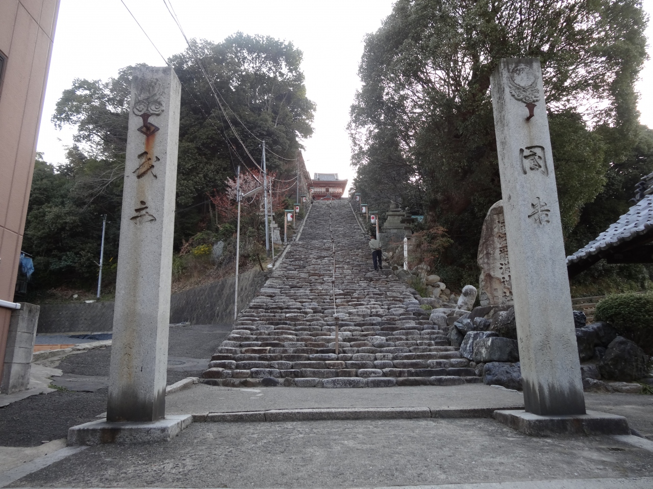135段の長い石段を上がった先にようやくお目見えするのが伊佐爾波神社です。高台にあることから、ここから見下ろす松山の景色はなかなかのものがあります。2棟の建物を前後に連結させてひとつの社殿にする「八幡造」という珍しい神社建築様式を採用している社殿も見どころです。八幡造は、ここ以外では、宇佐神宮(大分県)、石清水八幡宮(京都府)しか例がないとのことです。