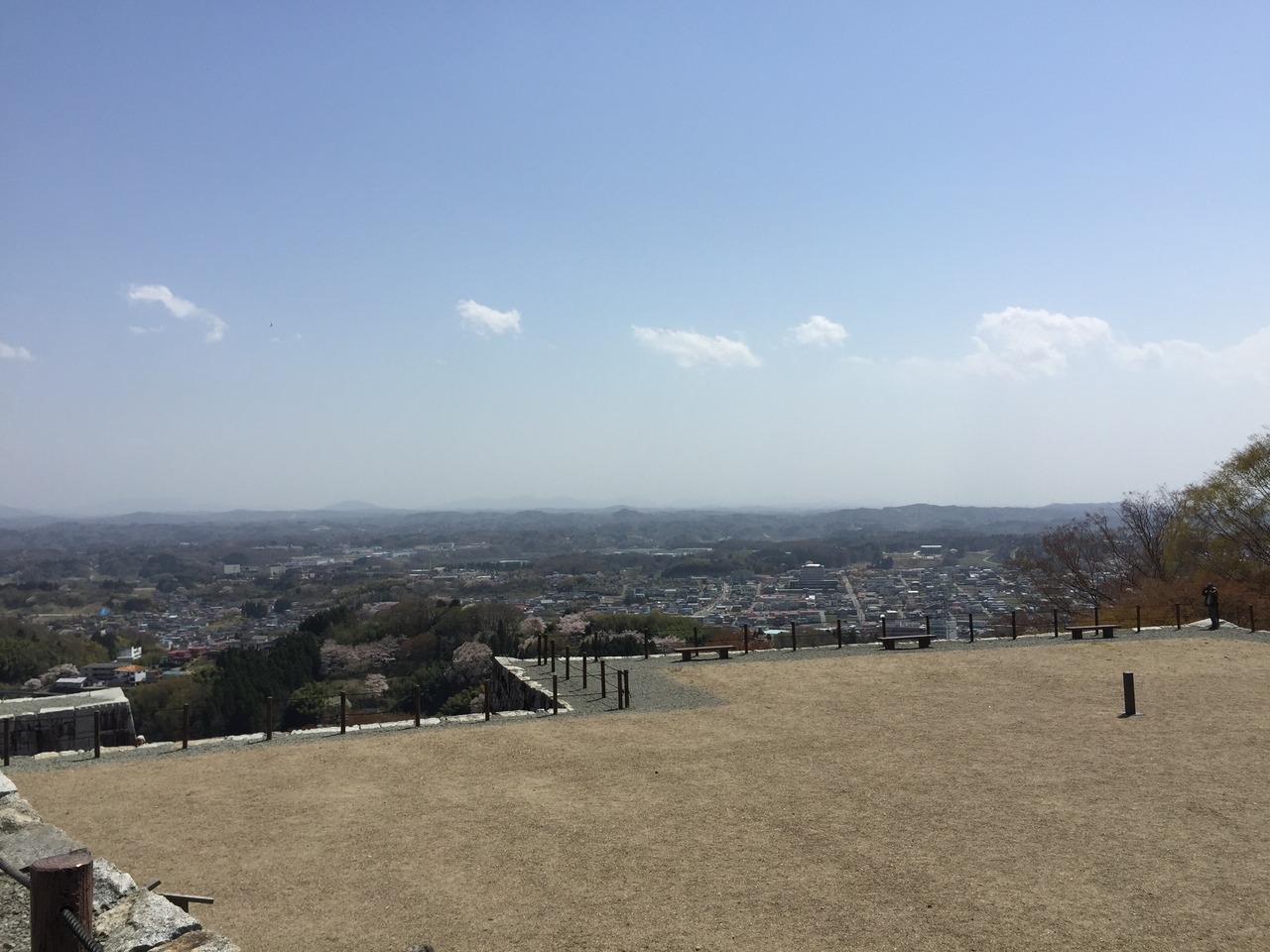反対側からは霞の桜と城下が一望。