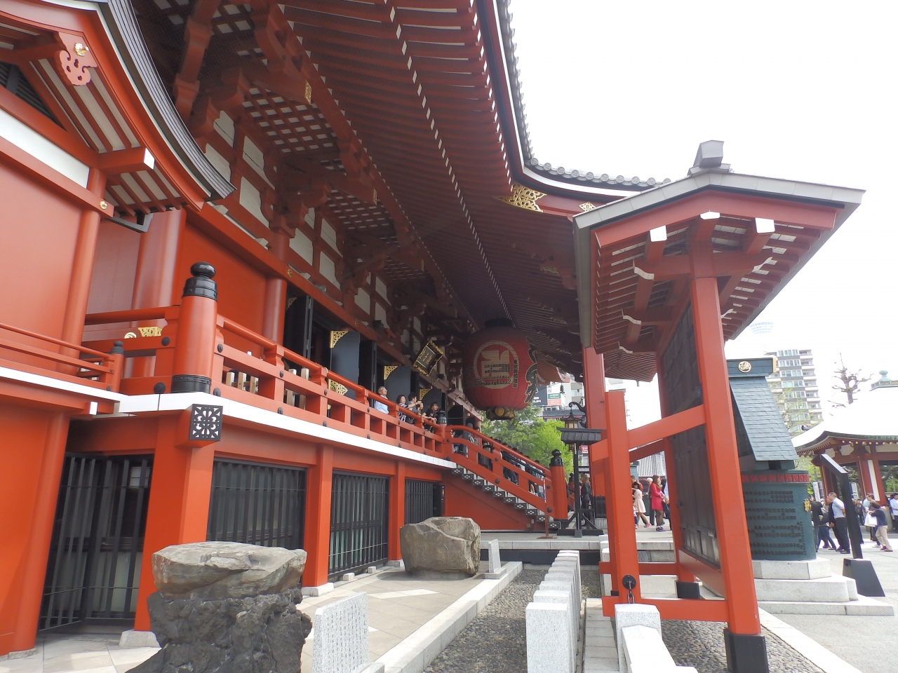 浅草に来たら、ここは絶対に外せないでしょう。工事中のため看板に囲まれていた雷門も、無事元の姿に。大きな提灯を背景に、記念撮影はやっぱりしておきたいですね。いつ行っても混雑が激しいので、写真を撮るのも一苦労ですが、それもまた一興です。