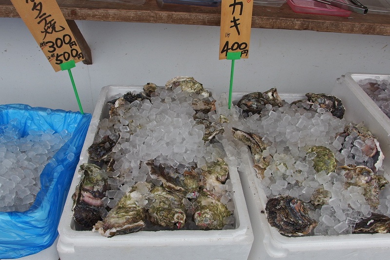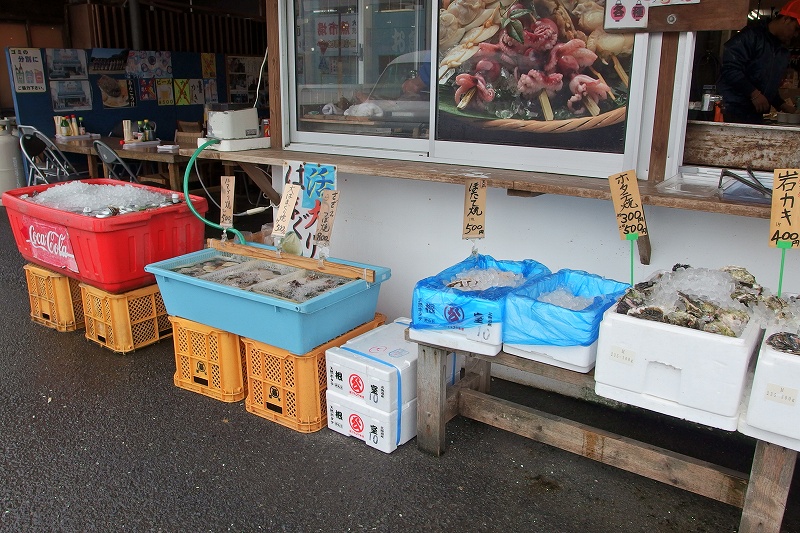 海産物屋さんの店先では 貝や魚その場であぶったもの食することもできました。