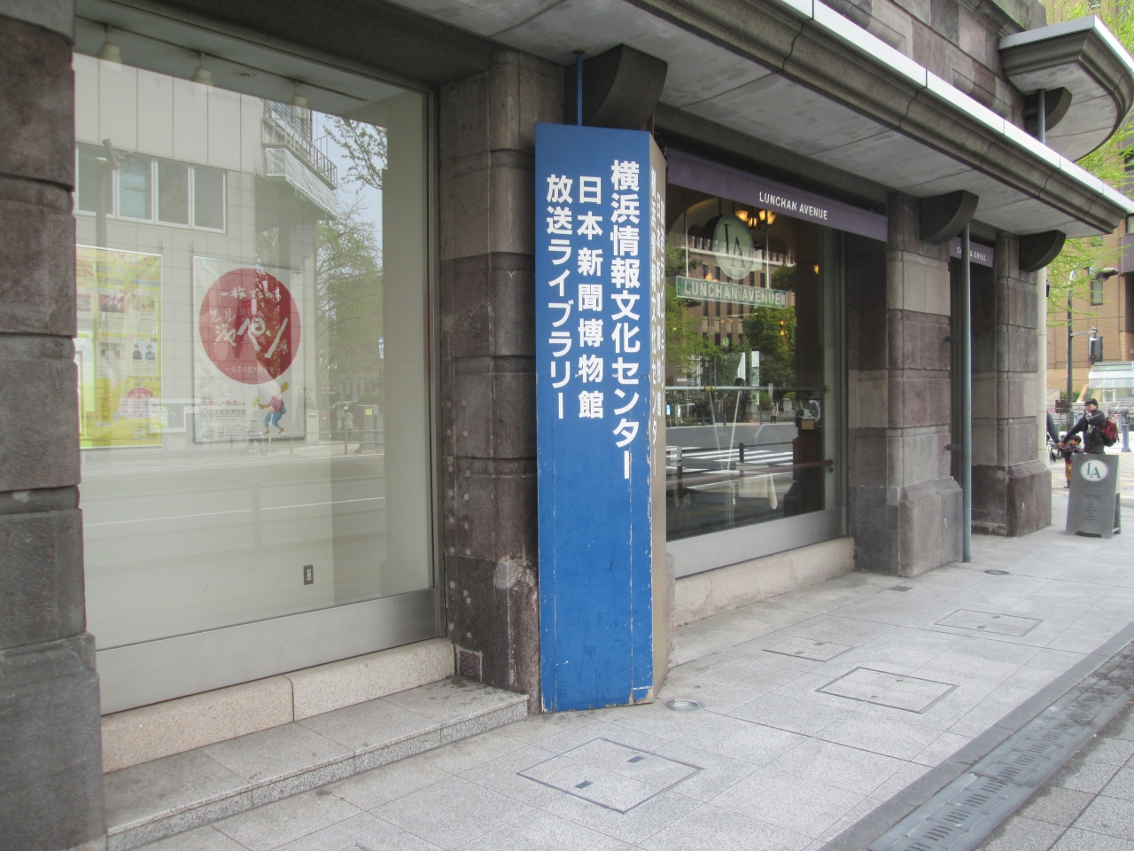 放送ライブラリーと新聞博物館を見学するために訪問します。最寄りは地下鉄日本大通り駅で駅の上にあるため雨の日は濡れずにアクセスできます。JRの場合、関内駅南口を下車して横浜公園を抜けて日本大通りを利用すると迷わずアクセスできます。