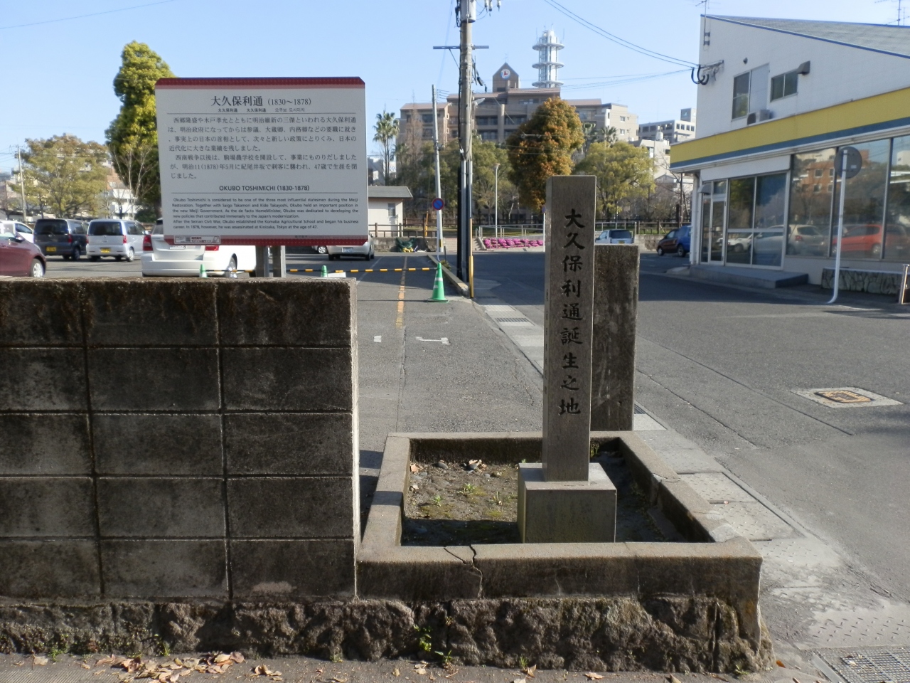 ナポリ通り沿いに「大久保利通誕生之地」の石碑と大久保利通の説明文があった。その裏は駐車場であった。往時を偲ぶものは何もなかった。しかし、訪れることが出来た事に満足した。