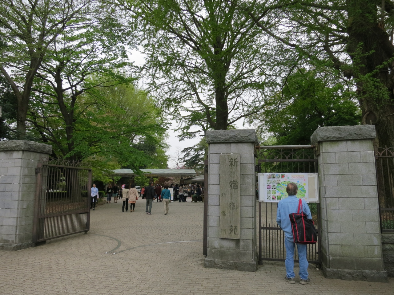 信州高遠藩主で家康の江戸入府を迎え、江戸城の西方の交通要所を警固した内藤氏の屋敷跡です。邸後は、明治以降官有地となり、大規模な温室や西洋庭園が造られ、昭和24年から新宿御苑として一般公開されているそうです。総理主催の観桜会の翌日(休日)の午前中に行きましたが、入場口は沢山の人で込み合っていました。広い園内にはいると、混んでいる印象はありませんでした。美しく手入れされた緑に囲まれ、春のお花もきれいに咲いて、新宿にいるのを忘れてしまいそうでした。都内で森林浴がしたくなったら、おススメの場所です。園内に入らなくても、新宿門から大木戸門までは玉川上水・内藤新宿分水散歩道があり、新宿御苑の端を歩くことも出来ます。