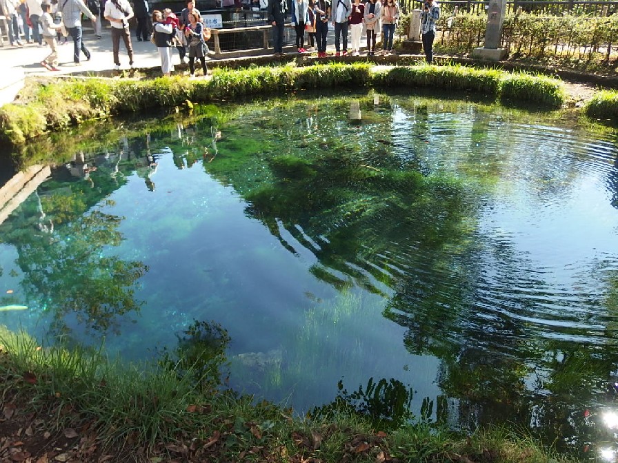 忍野八海の湧水は、富士山に降った雪や雨がおよそ20年以上の時間をかけ、地下水としてロ過されてきたものというから池の澄んだ色も秘密!