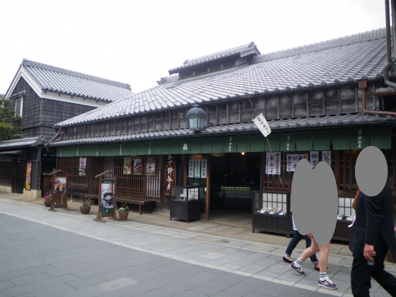 おはらい町通りにある和菓子やさん。お店に入るとショーケースに生菓子が並んでいます。ロールケーキやプリン等の洋菓子もあるんですね。奥にはテーブル席と座敷席があり、枯山水のお庭を眺めながら抹茶やお菓子、ぜんざいなどをいただくことができます。