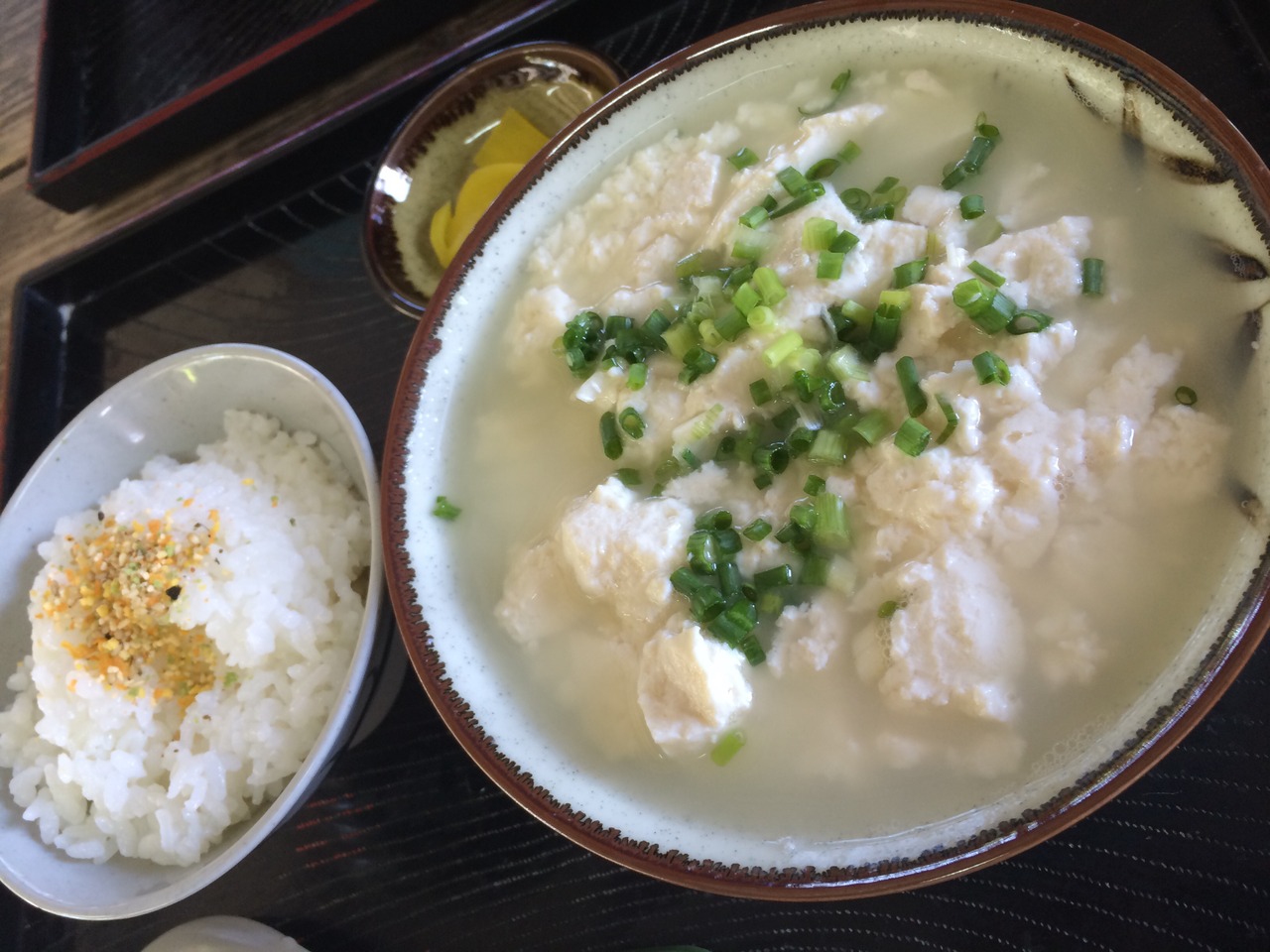 同行者はぶっかけゆし豆腐を注文。こちらはご飯、ゆし豆腐、とろろ、出汁、生卵がかかってました。これはこれでおいしかったです。