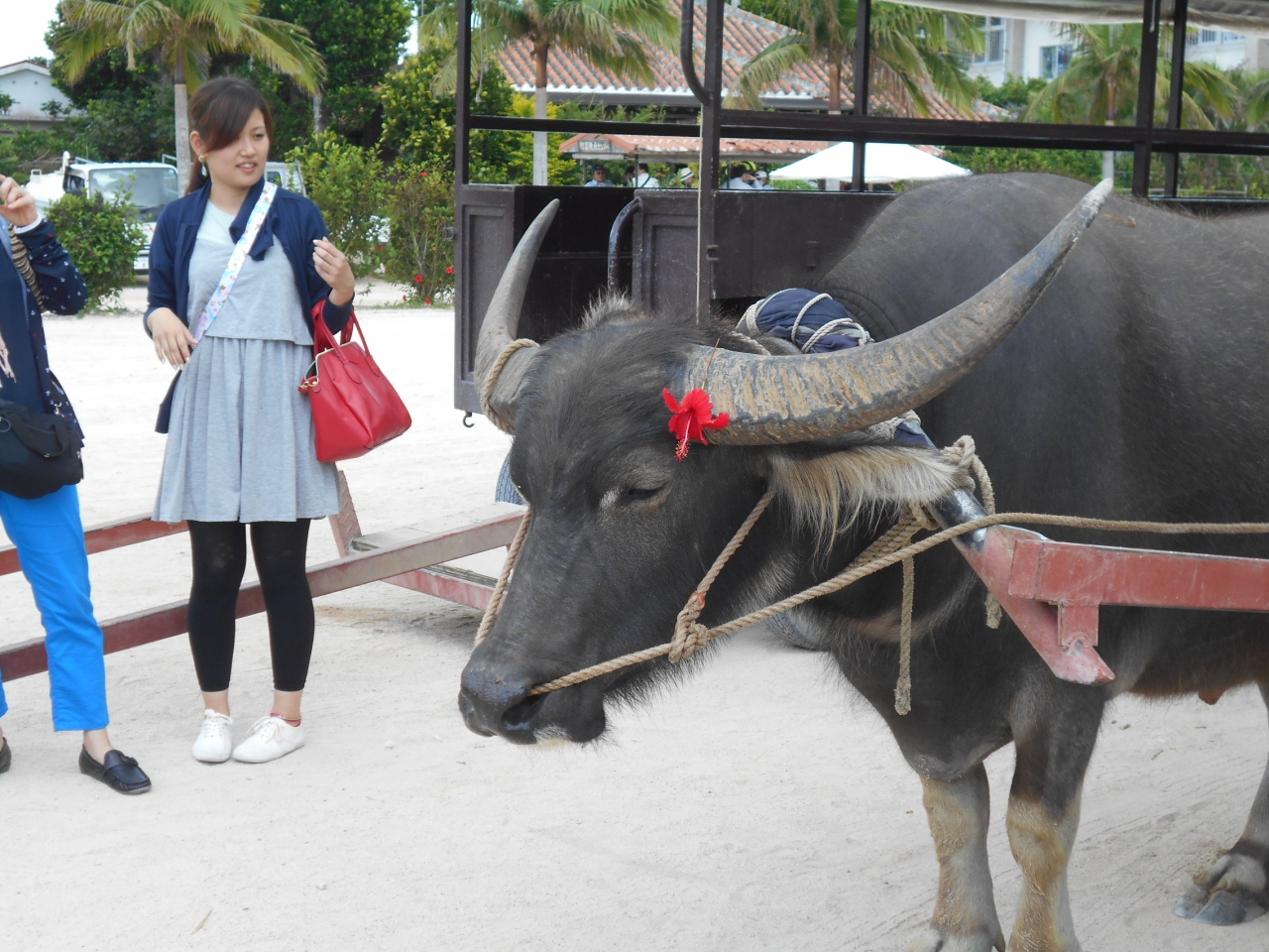 竹富の集落をゆっくり、のんびり水牛車でまわります。