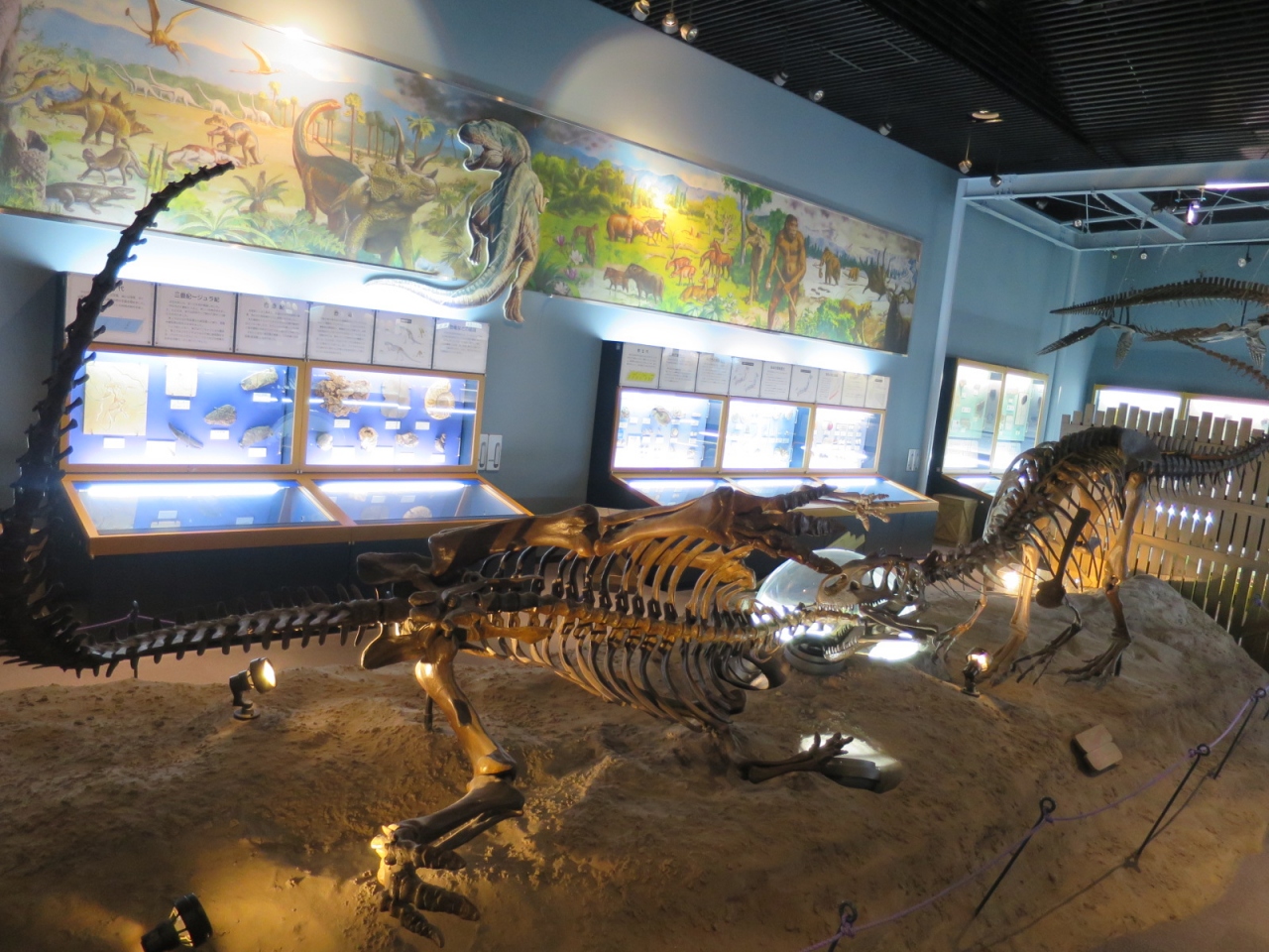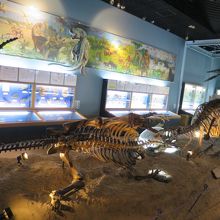 中には、肉食獣が草食獣を捕食するタイミングの化石ディスプレイがあり、かなりの迫力。