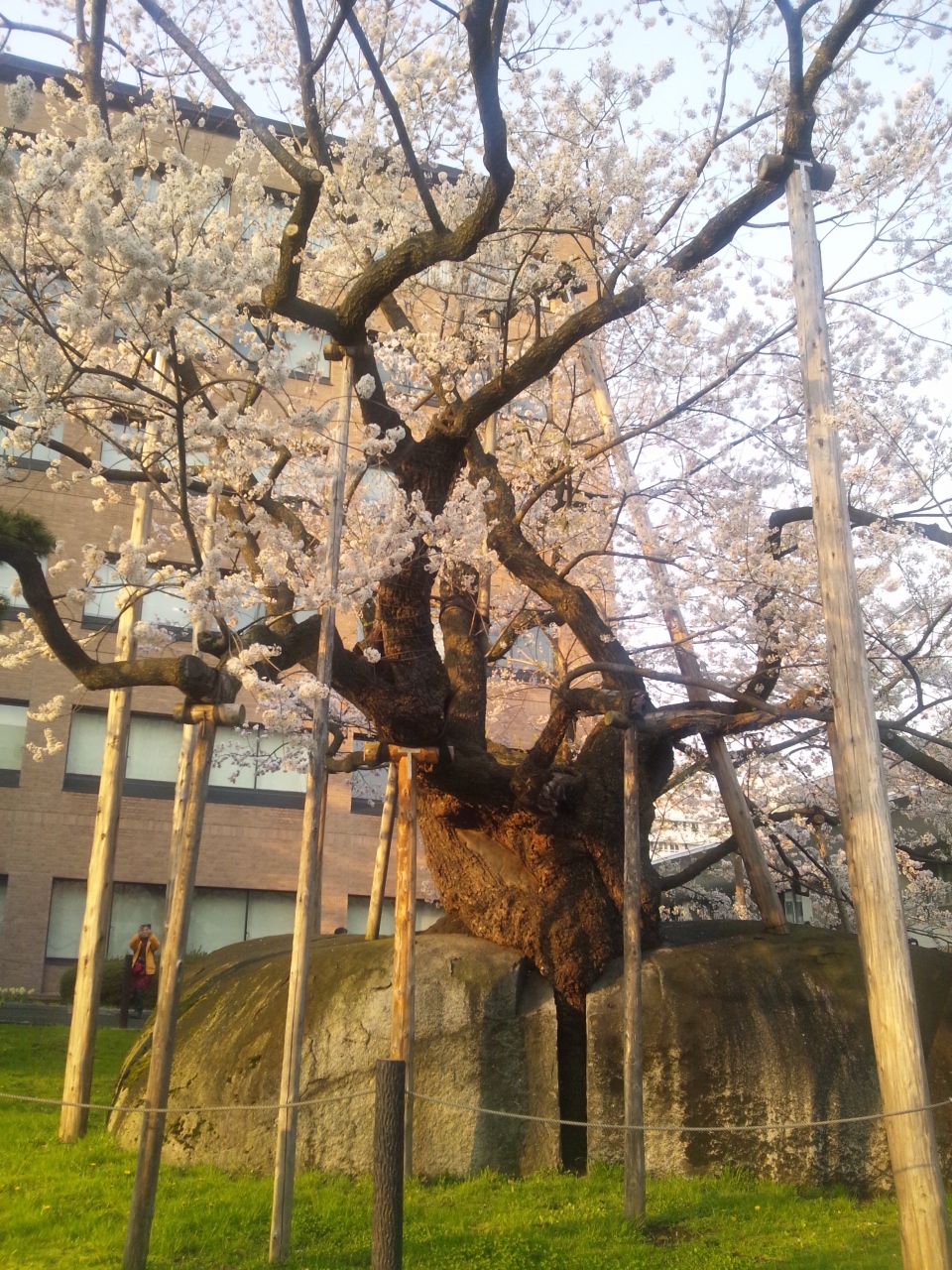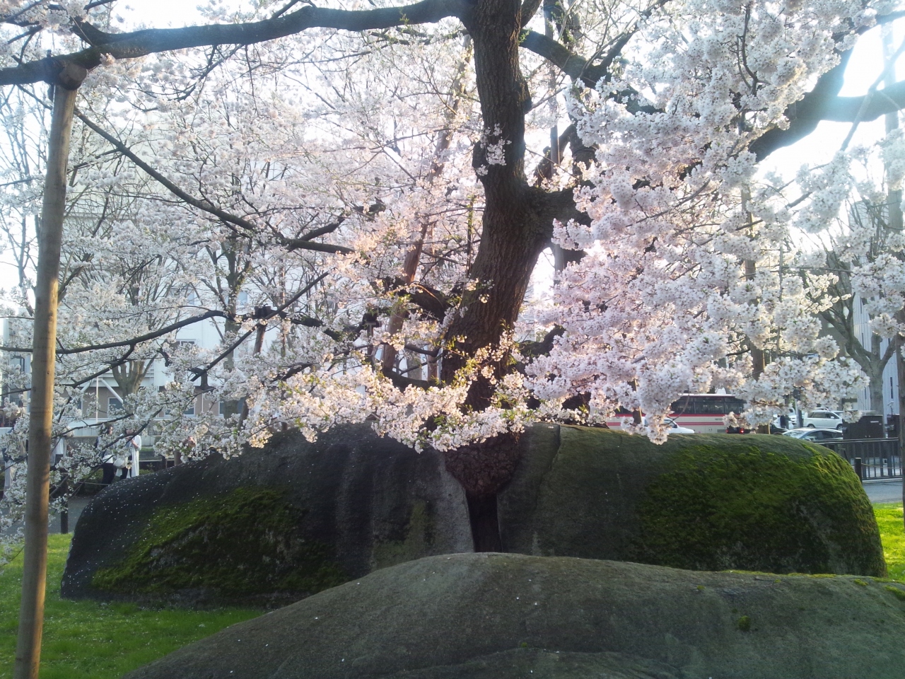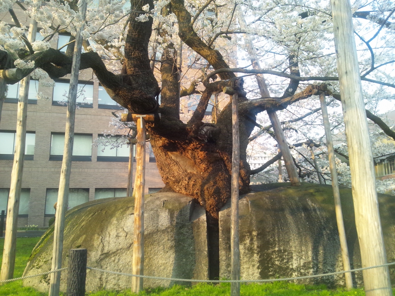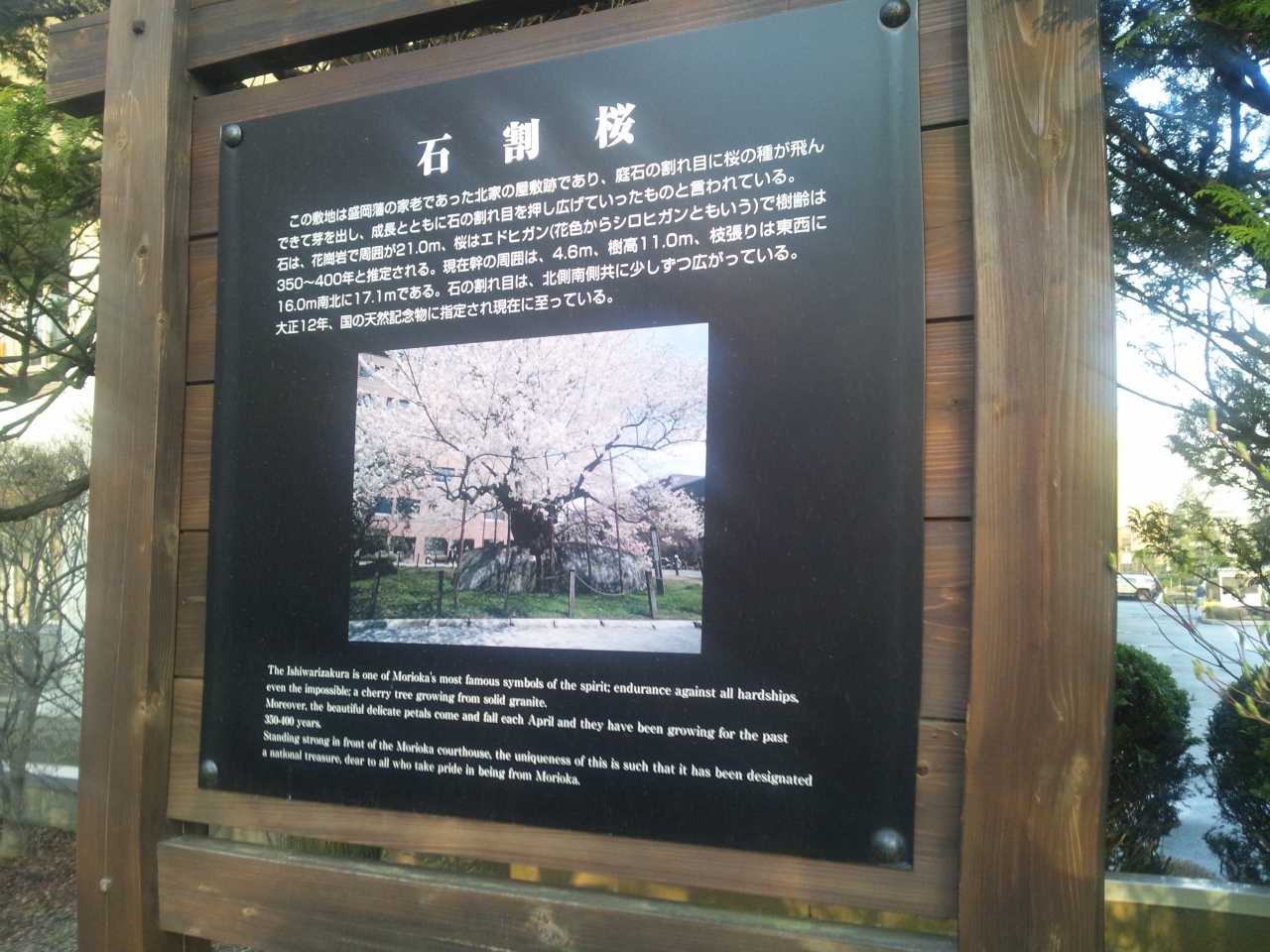 他の桜に比べると2色の花弁の色はやや薄目。伸びている木には沢山の支えがあり、守られているのだな~と岩手の方々の想いが木に込められておりました。見応え十分です!