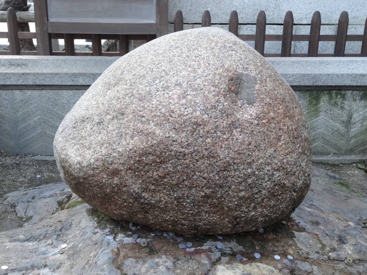 商店街から道後温泉本館を見て、左奥付近にあります。大国主命と少彦名命に由来する由緒正しい石で、願いをかなえる石として古くから有名ですが、最近ではパワースポットとしても注目を浴びています。由来を聞いて眺めると、何か威厳ある石にみえるから不思議なものです。