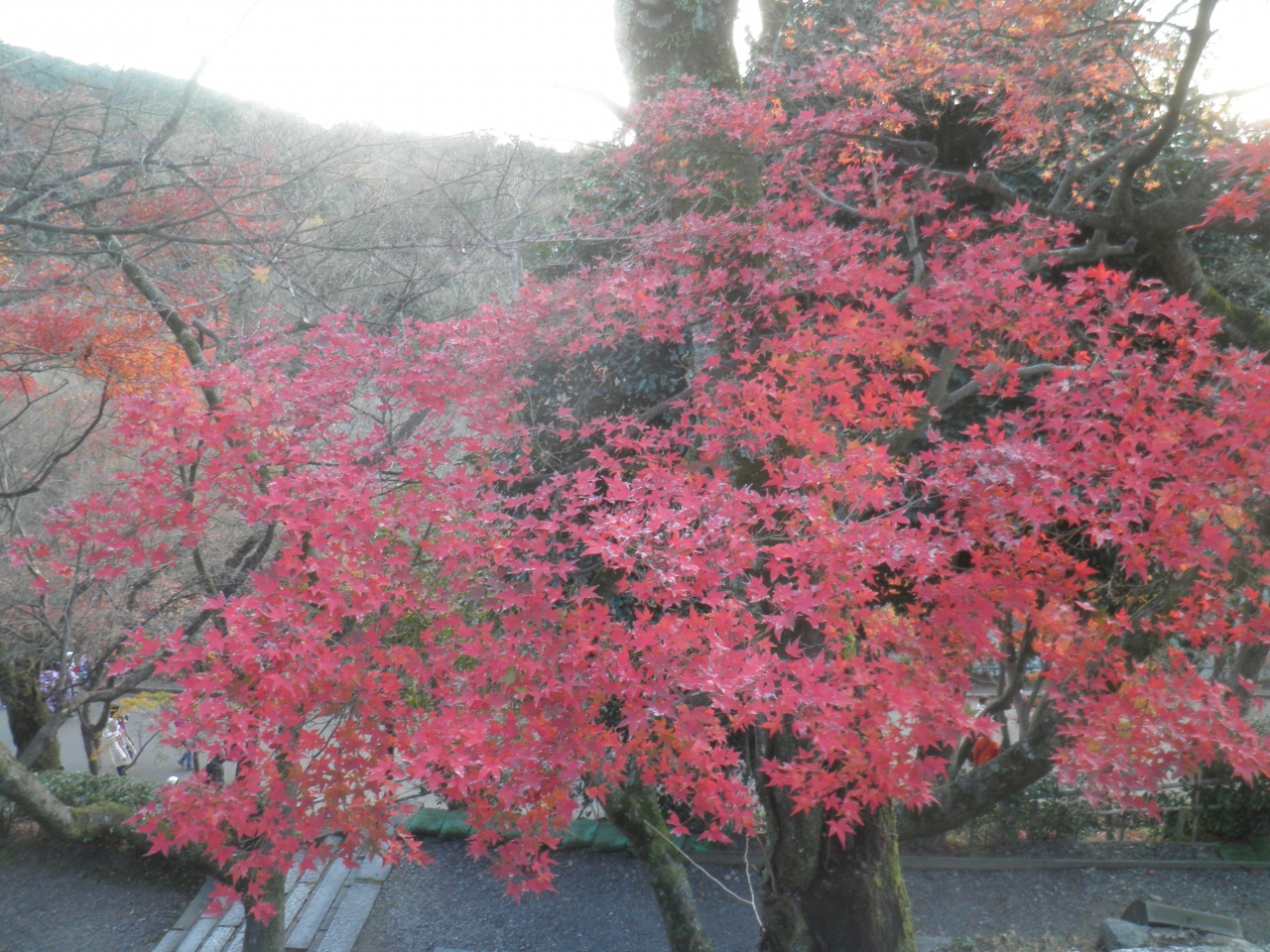 紅葉シーズンの真っ盛りに行ったので、自動車で清水坂までたどり着けず、途中から徒歩でむかいました。 境内も海外の観光客や修学旅行らしい学生などで混雑していました。 中には一方通行になっているところもありました。 寺院から少し離れたところのほうが落ち着いて紅葉の鑑賞ができました。