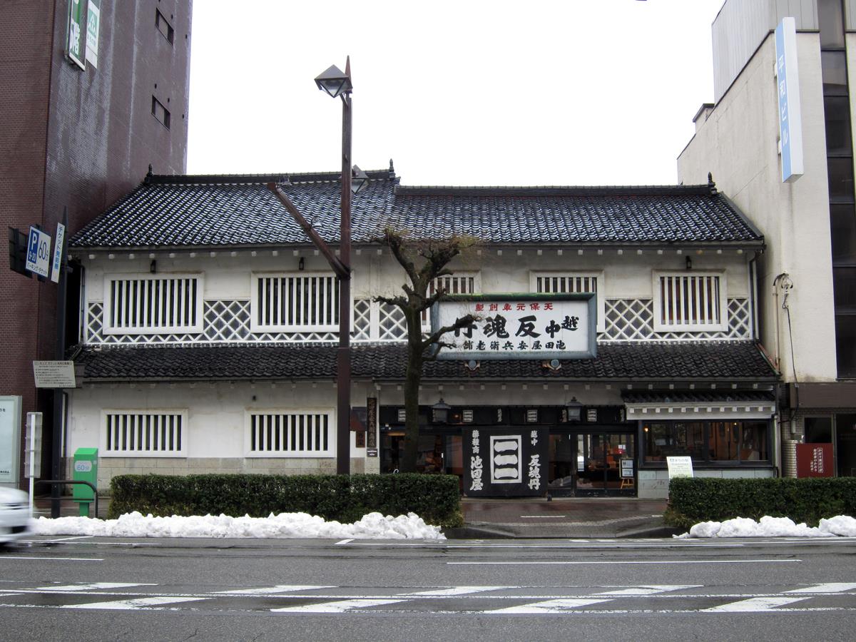 富山は薬が有名な街。その中でも富山市街地の中に趣のある建物と、反魂丹の大きな看板で目を引くのが池田屋安兵衛商店。